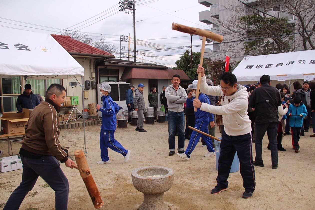 - 開会式に出席後は地域の皆様と餅つき丸一日で腕がパンパンです(笑)