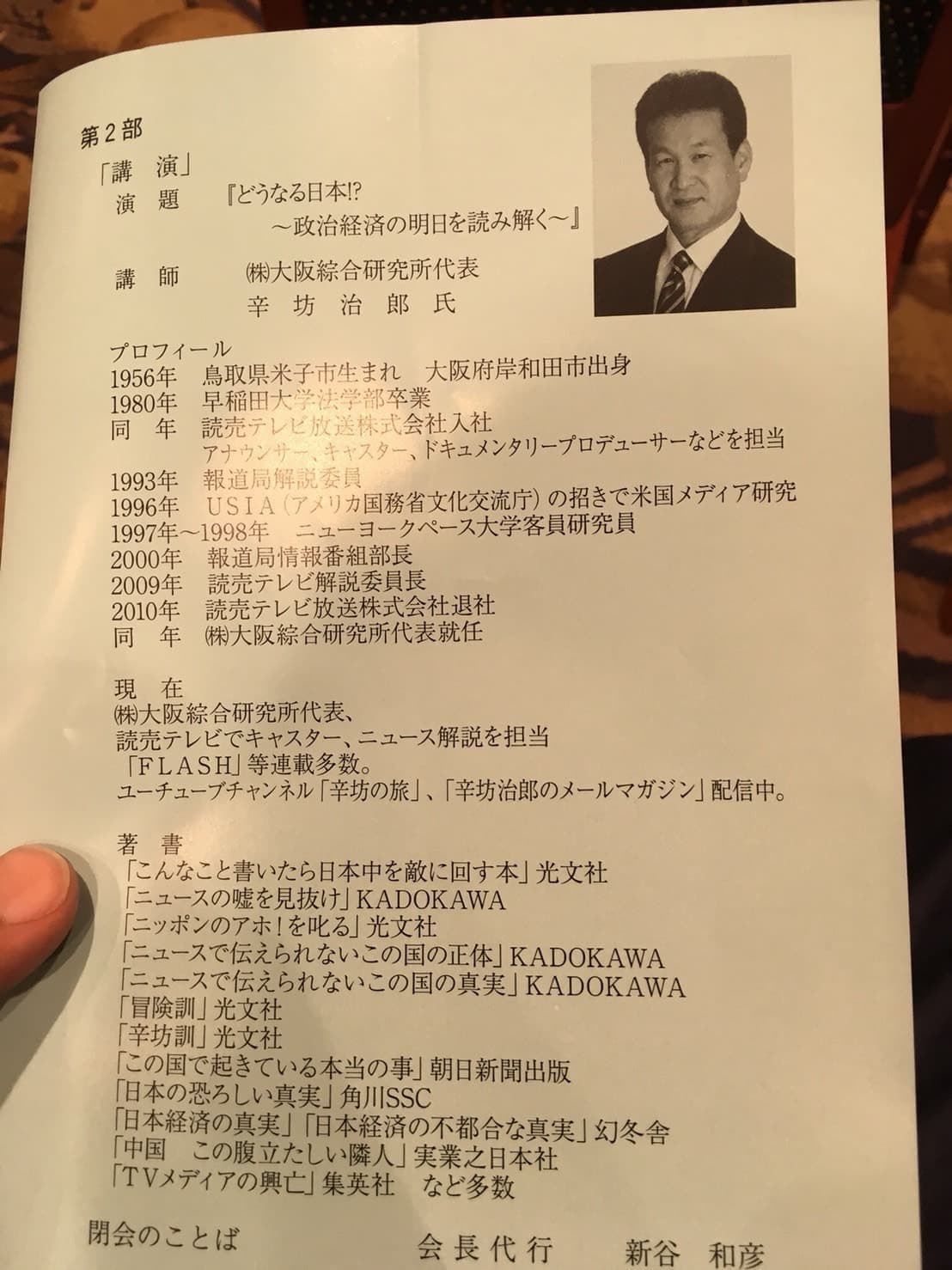 自民党政経セミナーに出席 辛坊次郎氏のお話を聞かせていただきました。