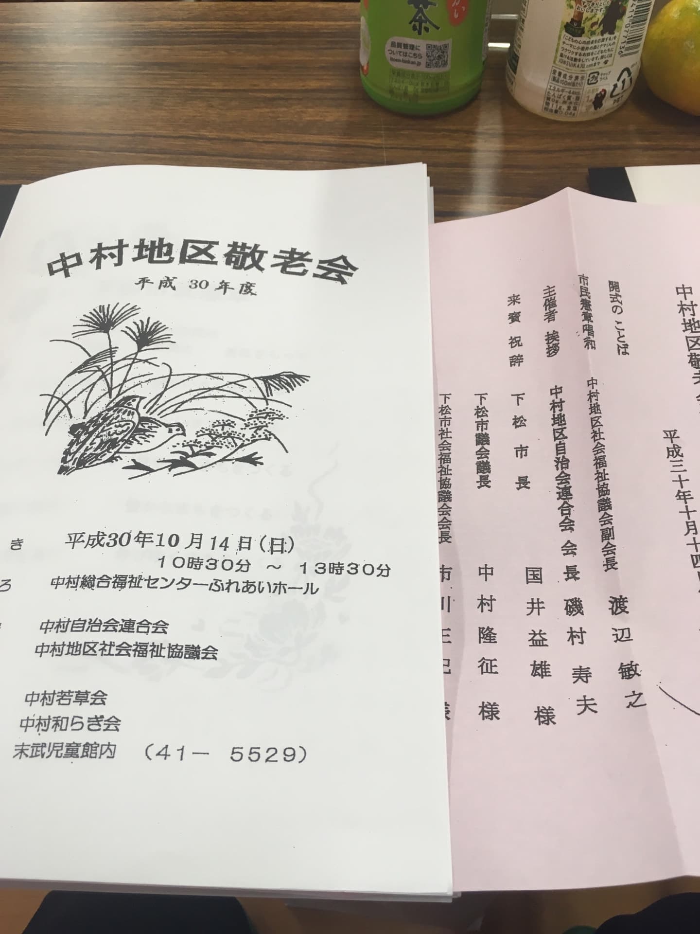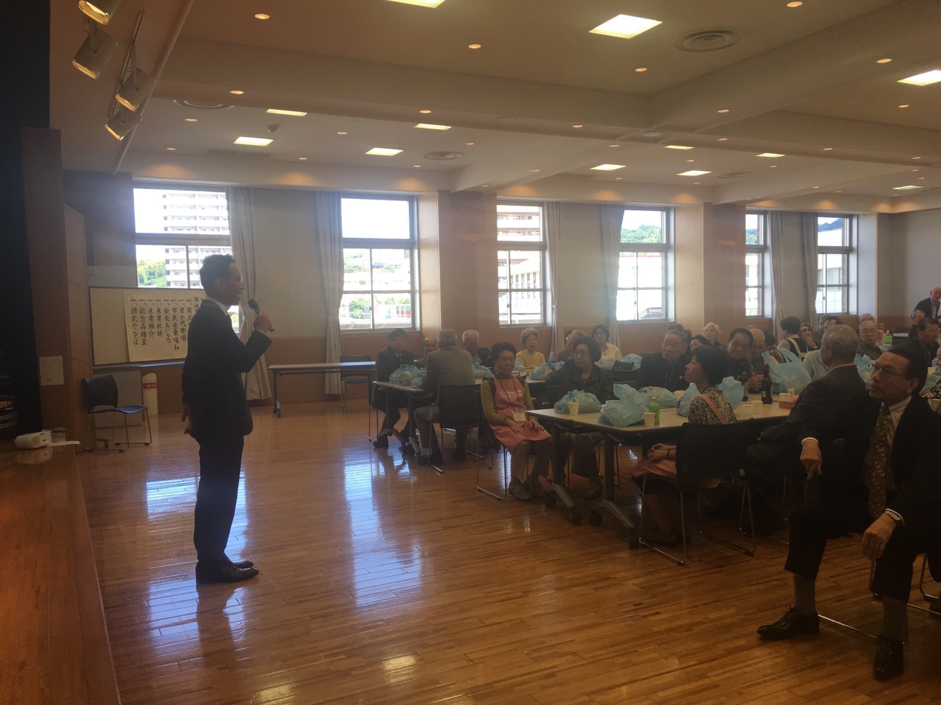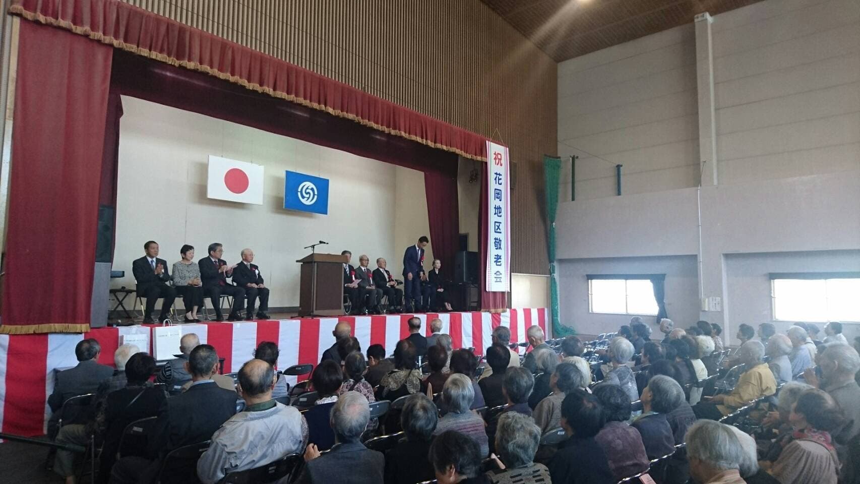 花岡地区と西地区の敬老会にてお祝いの言葉を述べさせていただきました。