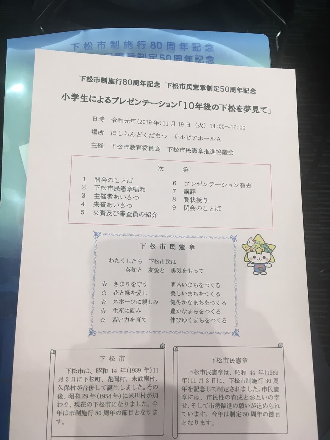 下松市制施行80周年並びに市民憲章制定50周年記念 小学生によるプレゼンテーション[10年後の下松を夢見て]に参加‼️