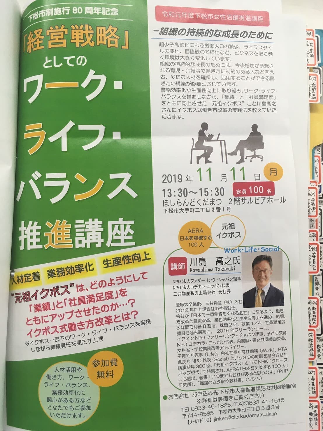 講師に元祖イクボス 川島高之氏(NPO法人コヂカラ日本代表並びにファザーリングジャパン理事)をお迎えして経営戦力としてのワークライフバランス講座‼️
