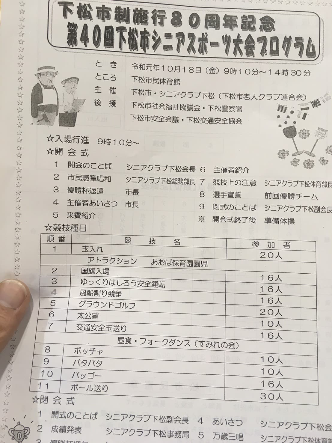 朝一は第40回下松市シニアスポーツ大会の開会式に出席‼️