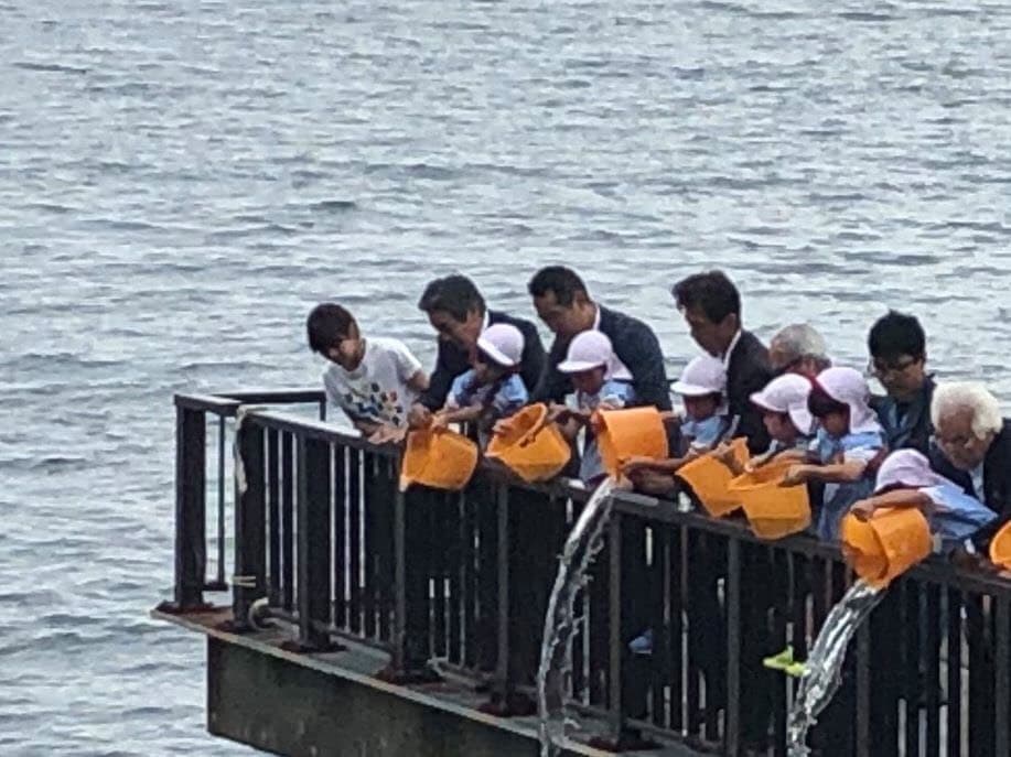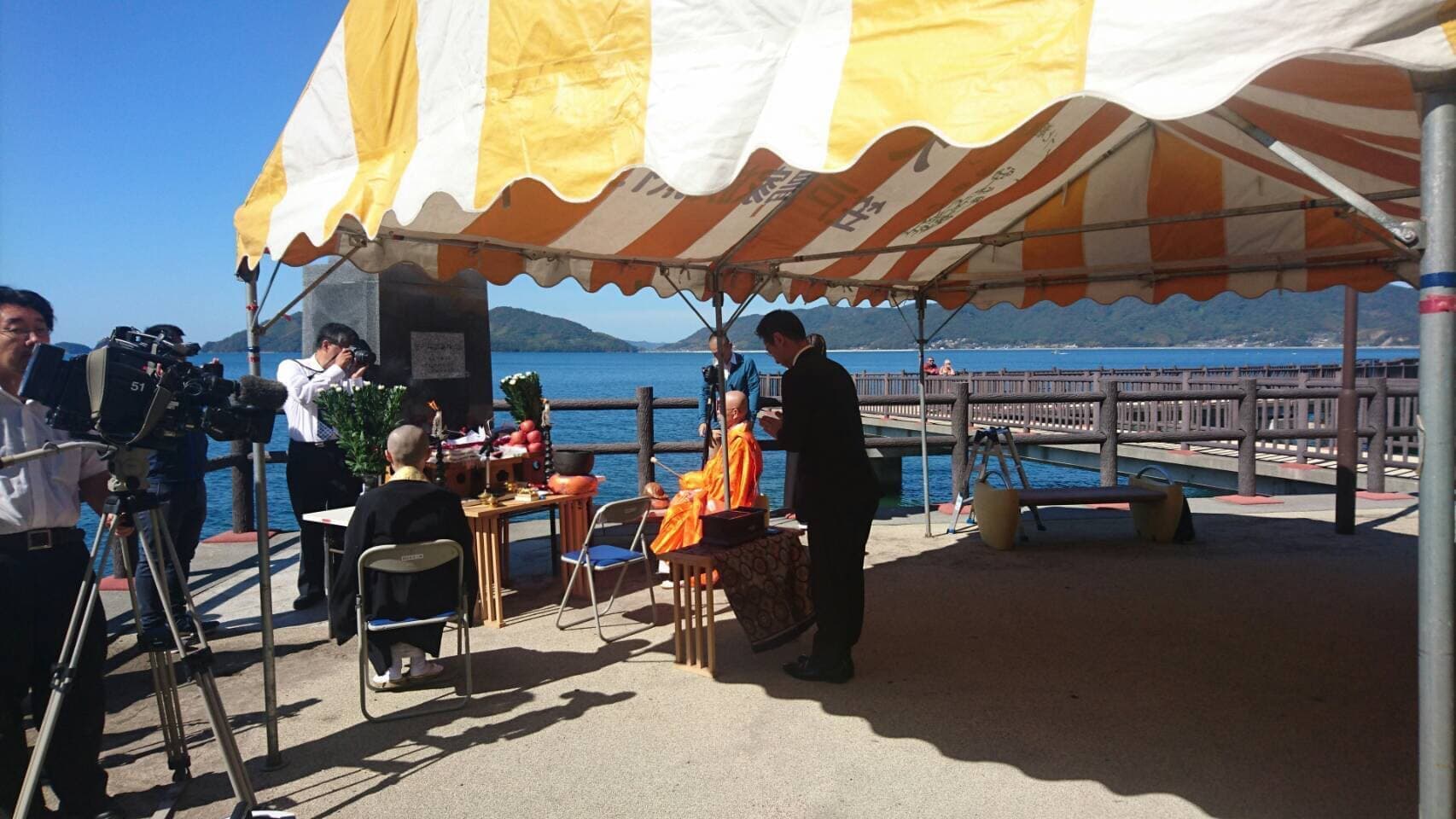 笠戸島にてひらめ供養奉賛会主催のひらめ等魚介類供養祭に参列致しました。供養祭ののちは船上から鯛とひらめの稚魚の放流‼️