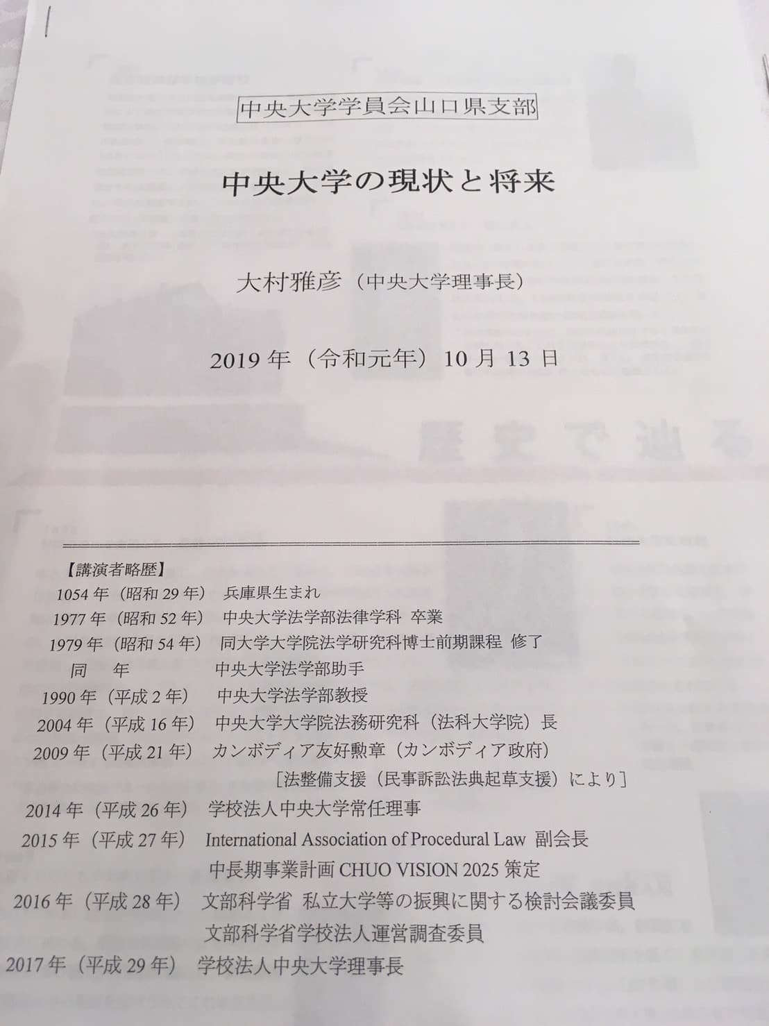 午後からは山口市に移動し、中央大学学員会山口支部 講演会、総会に出席です。