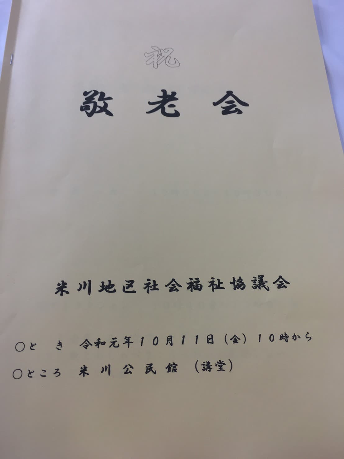 10時から開催の米川地区敬老会に出席してきました。各地区開催の敬老会にてお元気なご長寿の皆様にこれまでのご労苦に対して感謝を述べる機会をいただけております。