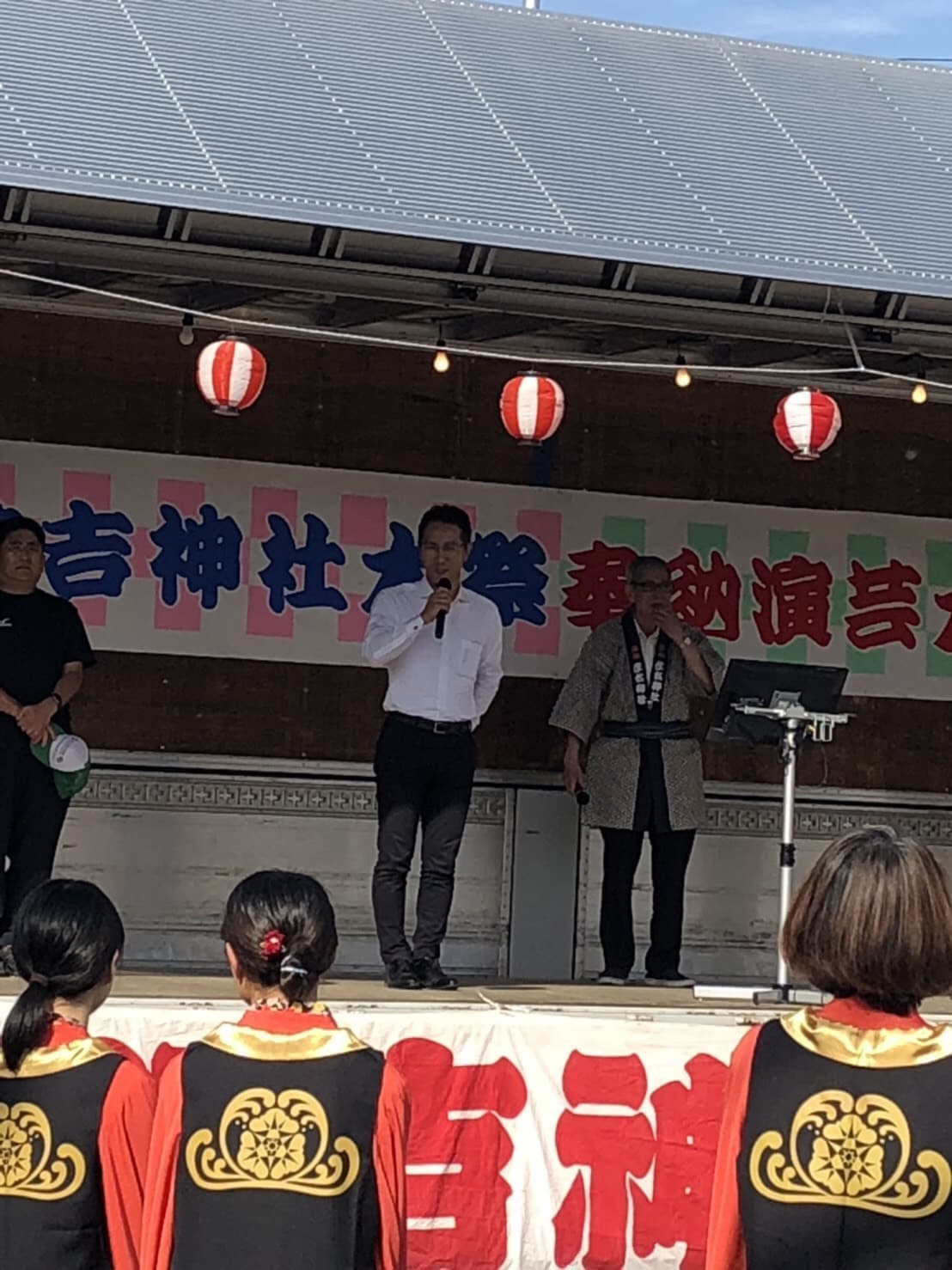 宇部から急いで戻り駅南地区にある住吉神社奉賛会主催の住吉祭りに参加