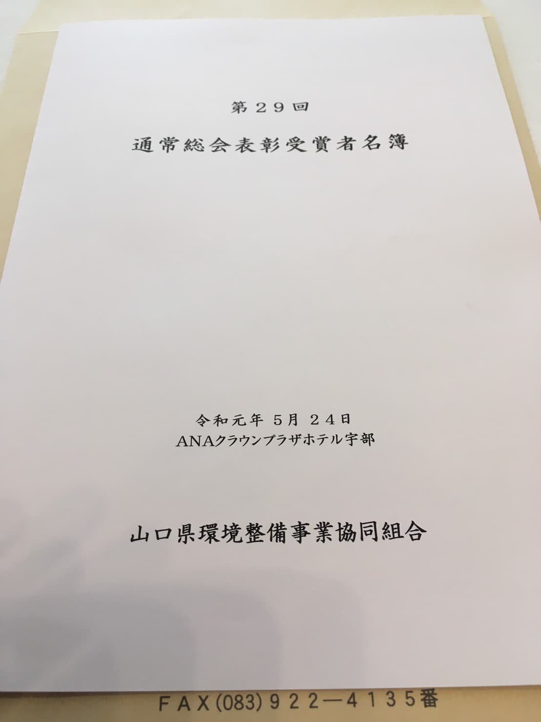 午後からは議長代理として山口県環境整備事業組合 総会に祝辞の代読のため出席させていただきました。