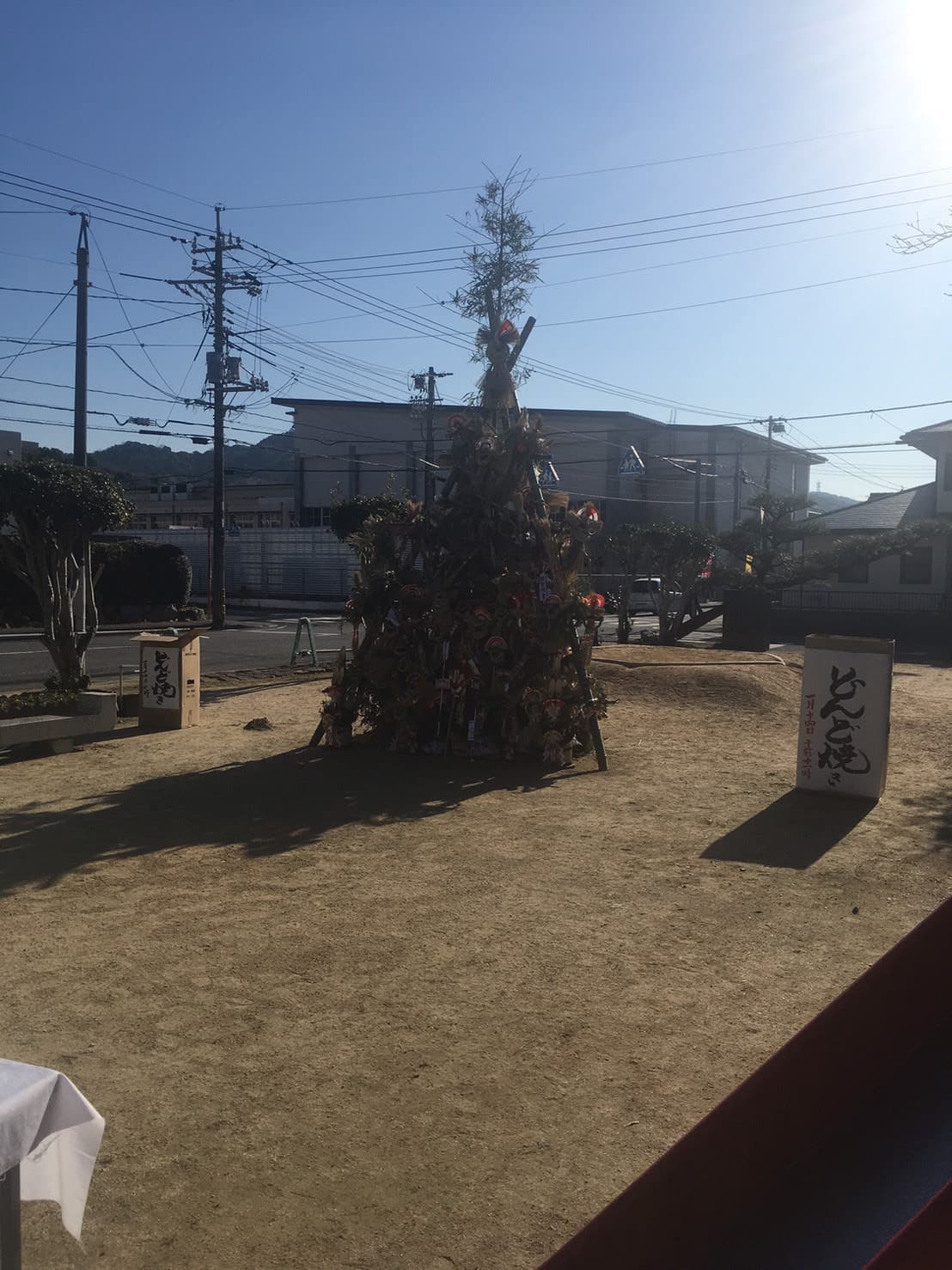 旗岡地区のどんど焼きを終え、金輪神社どんど焼きに参加してきました。今年からだいがらでついた餅で雑煮やきな粉餅の接待が始まりました。こちらも多くの方々で賑わっております。
