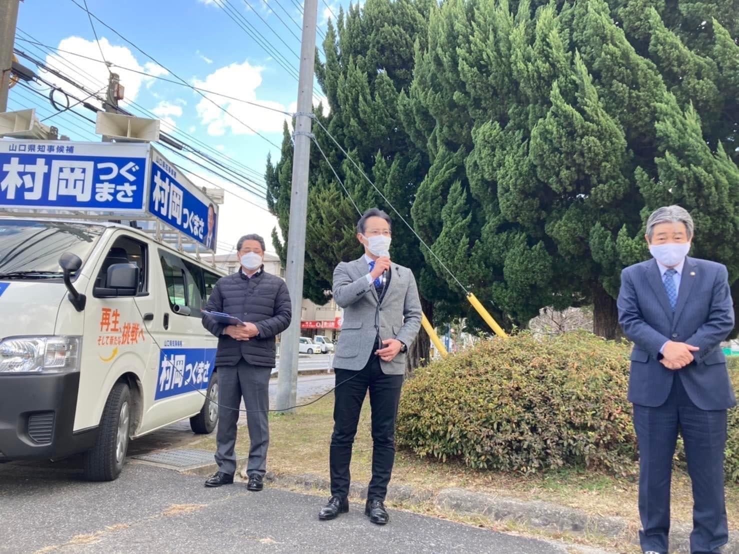 本日は村岡つぐまさ候補の街宣車が下松入り‼️