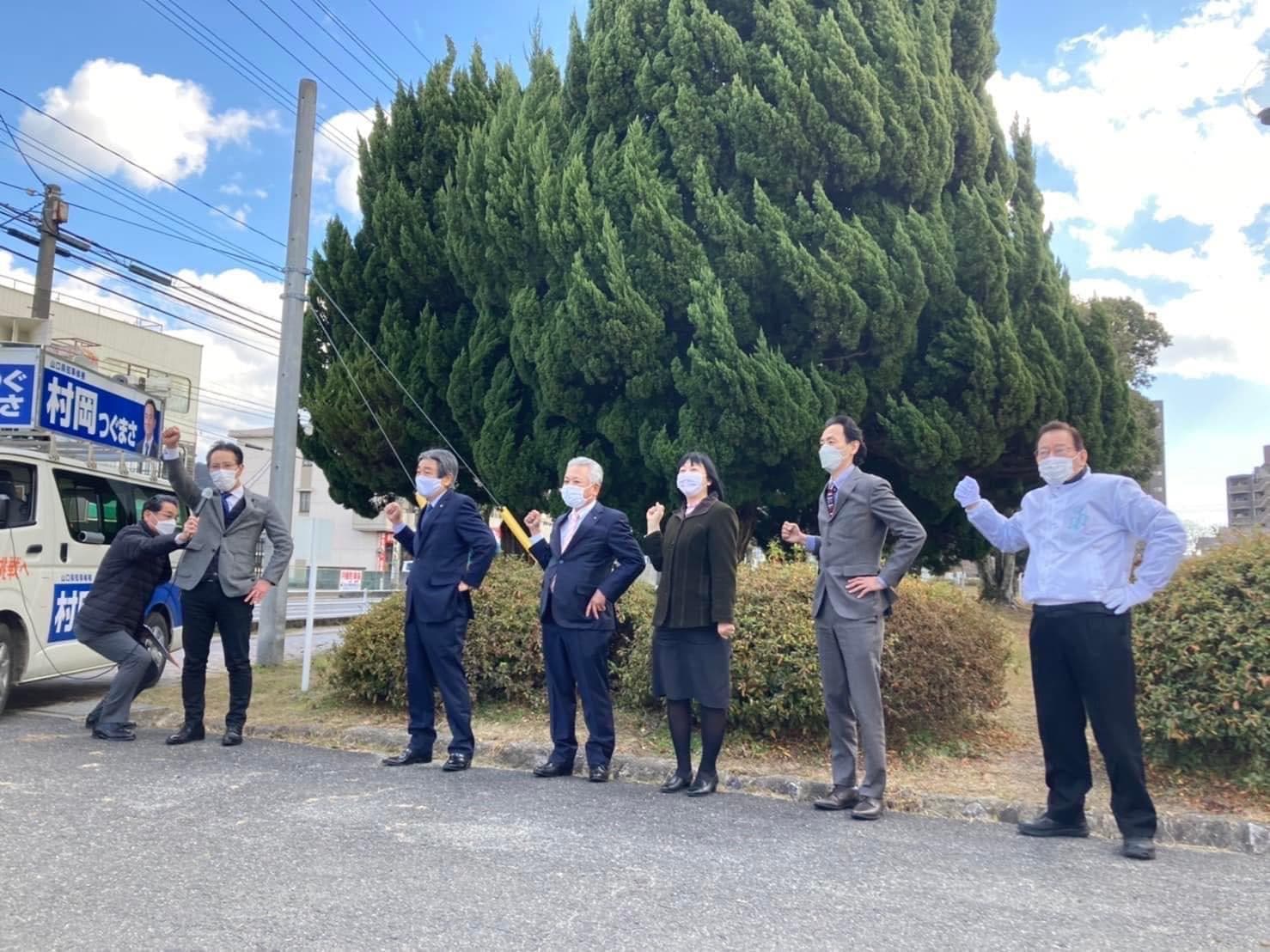 低投票率が予想されていますが、一人でも多くの方に選挙に行っていただき、自民党、公明党、連合山口が推薦する、実績のある若きリーダー、村岡つぐまさ候補への力強いご支援よろしくお願いします。