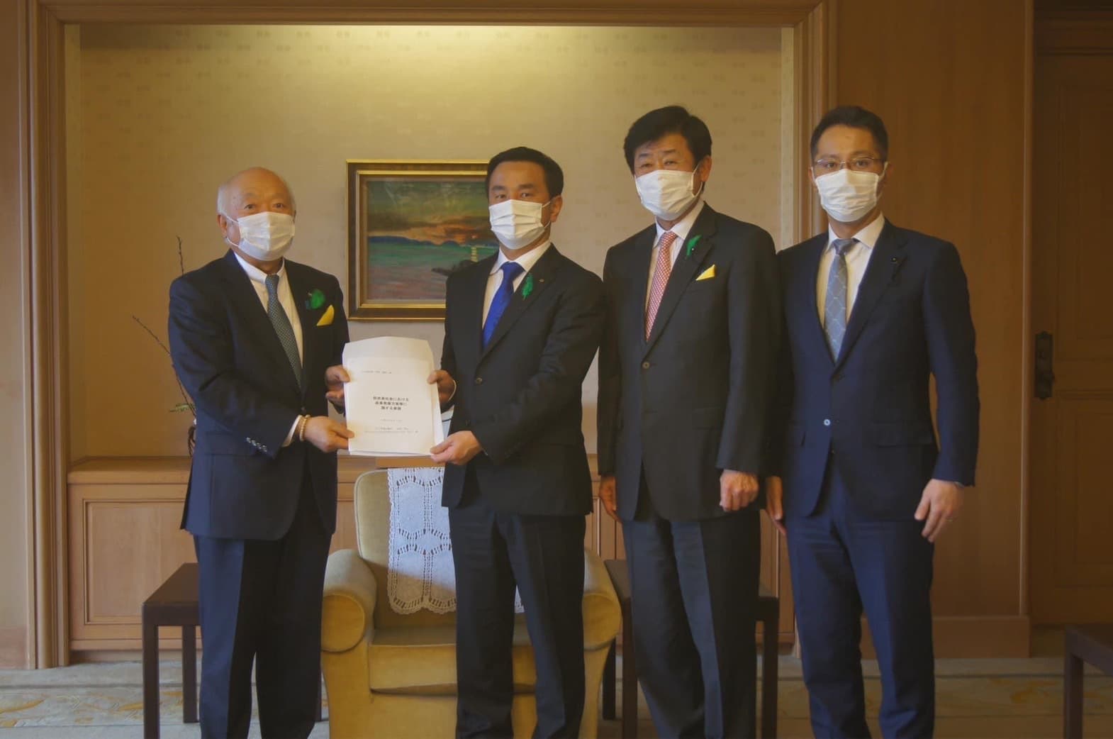 そして、本日委員長報告がなされた脱炭素社会における産業発展方策調査特別委員会で取りまとめた報告書を議長、委員長と共に知事に提出させていただきました。