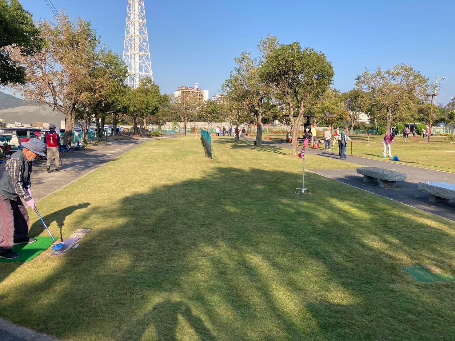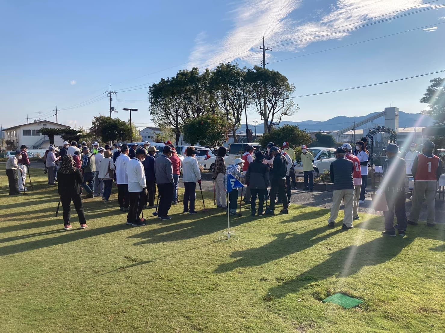 素晴らしい天気に恵まれて、11チーム53名の皆様と館長を含む公民館ビギナーチームが個人、団体戦で競技を行います。